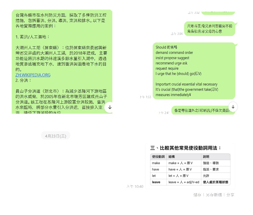 我主要靠三民的教科書準備所有考科,採「土法煉鋼」方式,每天都安排讀書與練習題目的時間。由於我工作時間不固定,我會利用零碎時間讀書,例如等餐、 送完餐後的空檔。每天至少讀一小時,我會把重點整理在LINE的Keep功能中,標上日期與提示,幫助快速複習。 【分享LINE KEEP筆記截圖】
