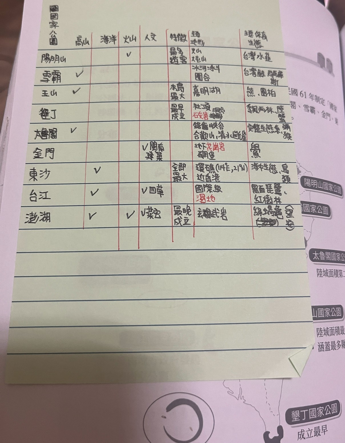 【臺灣自然及人文地理】 地理方面,上完課之後就是一直做題庫,因為這科目範圍相當廣,所以題庫內容也相當多,在做題目的時,不懂的部分我會找相關YouTube影片了解。 還有一方面多多少少會參雜一些歷史,所以不只要準備地理,還要準備歷史。在備考的時候,總會遇到一些意外狀況,像是我得了兩次流感, 導致進度落後,但慶幸的是,我平常讀書狀況好的情況下會想超前進度多讀一點,所以沒有落後得太嚴重。 所以時間不要盡量排得太緊湊,才能比較好因應突發狀況。筆記2